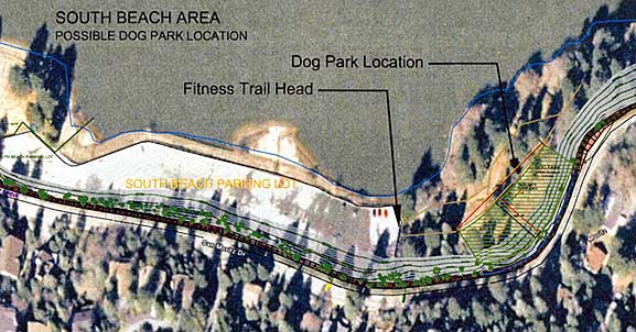 The dog park will feature wrought iron fences and separate areas for large and small dogs. The 21,600 square-foot park will be located about 100 feet from the popular Lake Gregory Fitness Trail near the east end of the South Beach parking lot. In addition to the dog park, Regional Parks plans to replace dilapidated chain link fence along the lake edge with wrought iron fence.